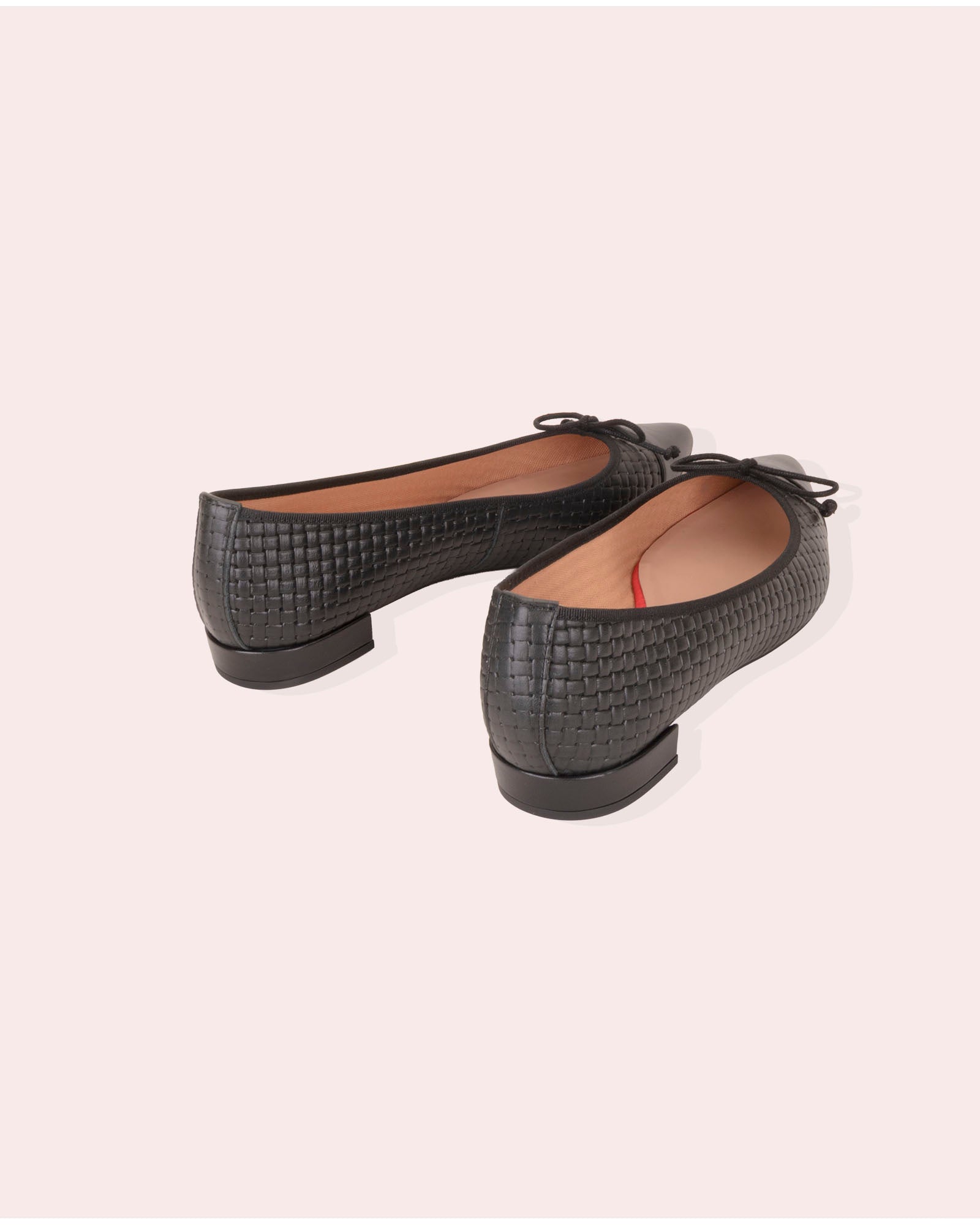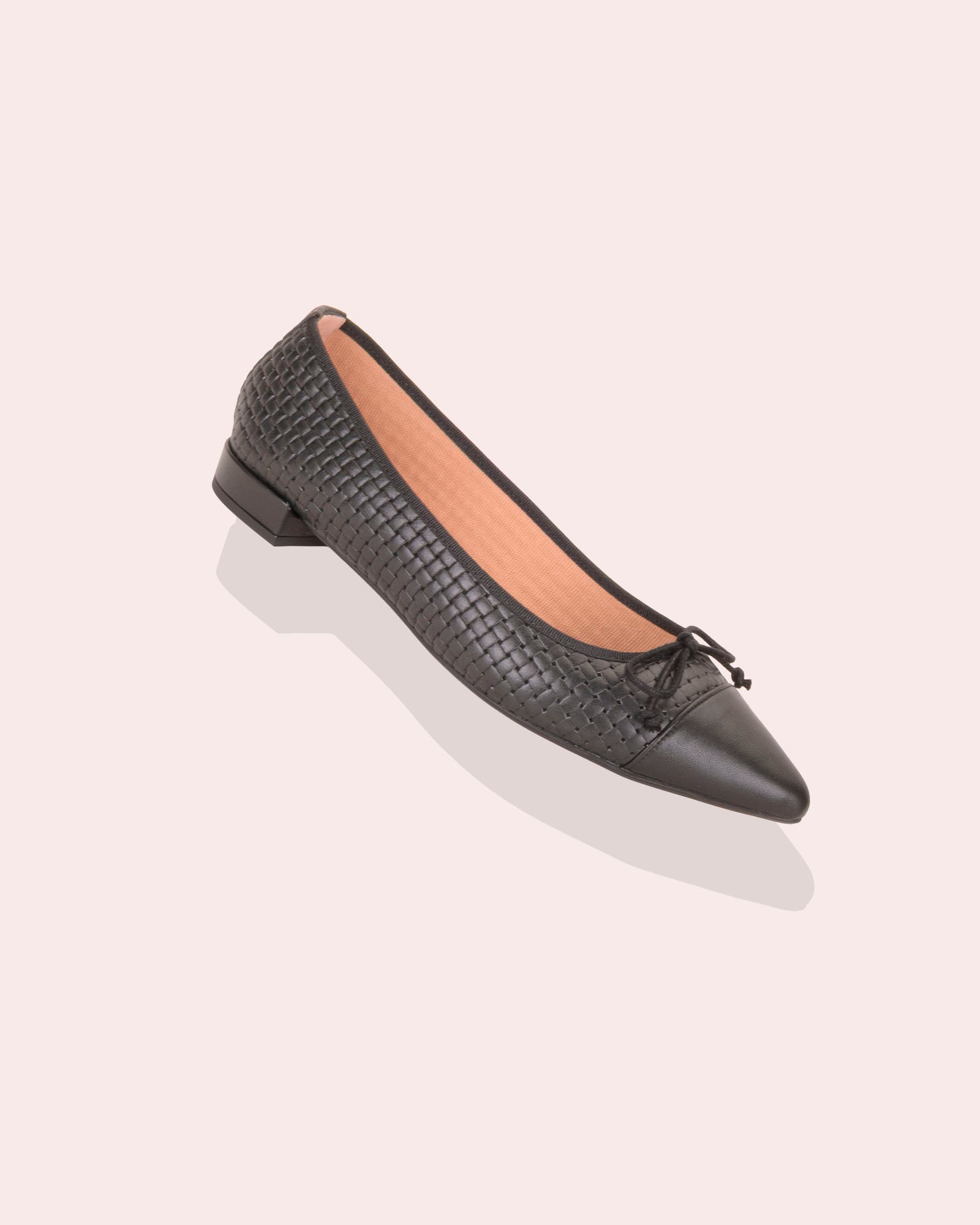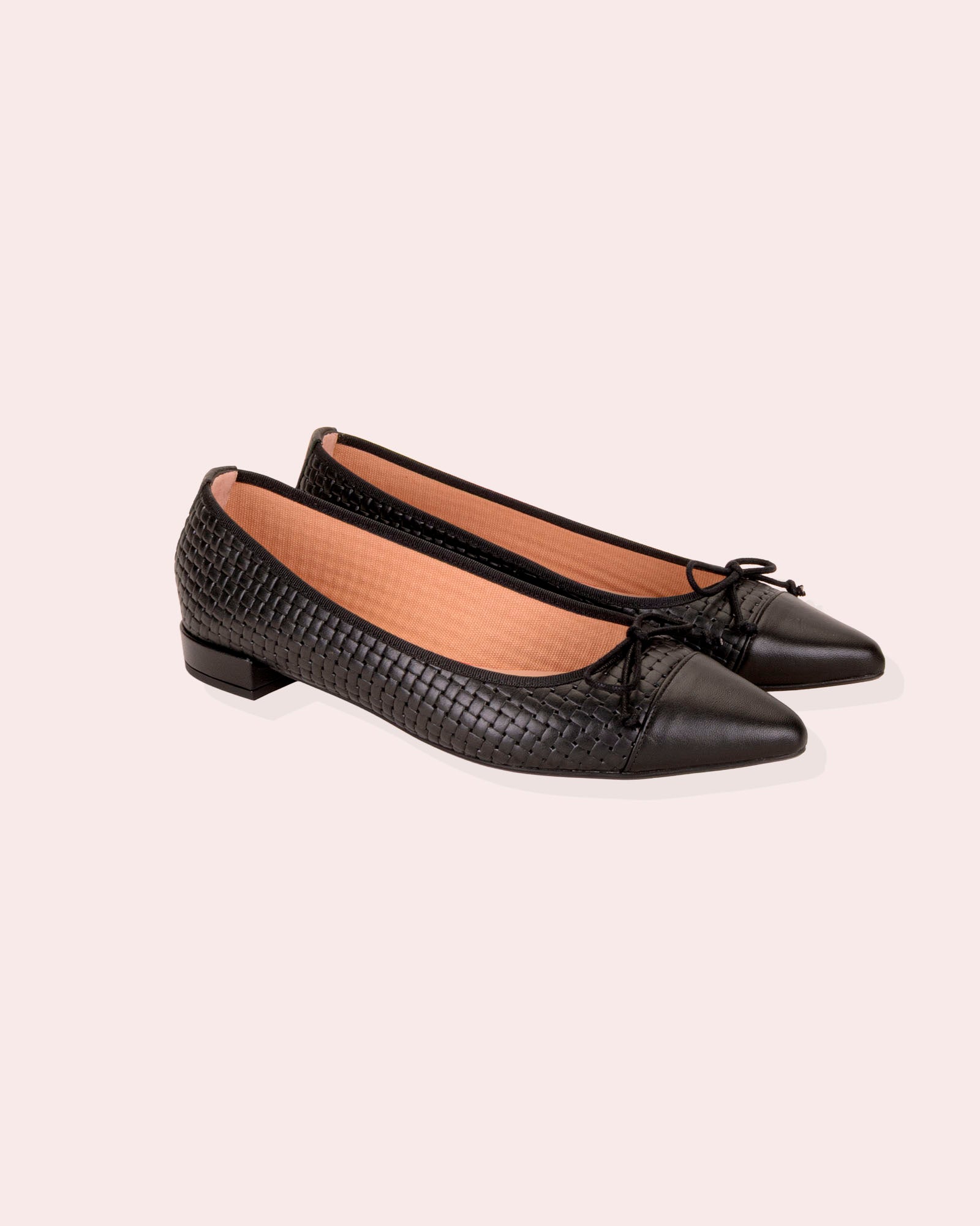 - Bailarina en piel suave con grabado de mini cuadros negro.