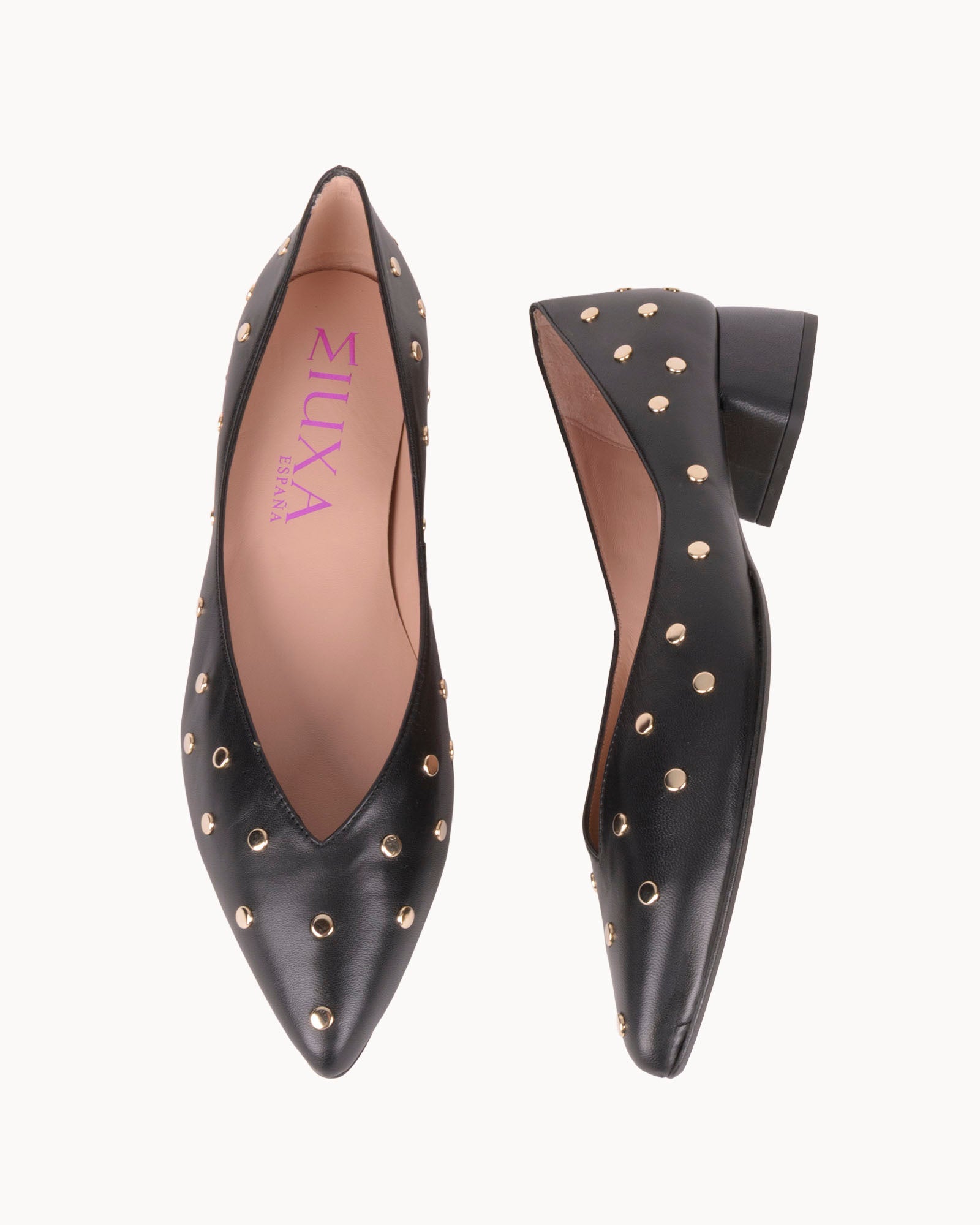 - Detalle de tachas doradas.