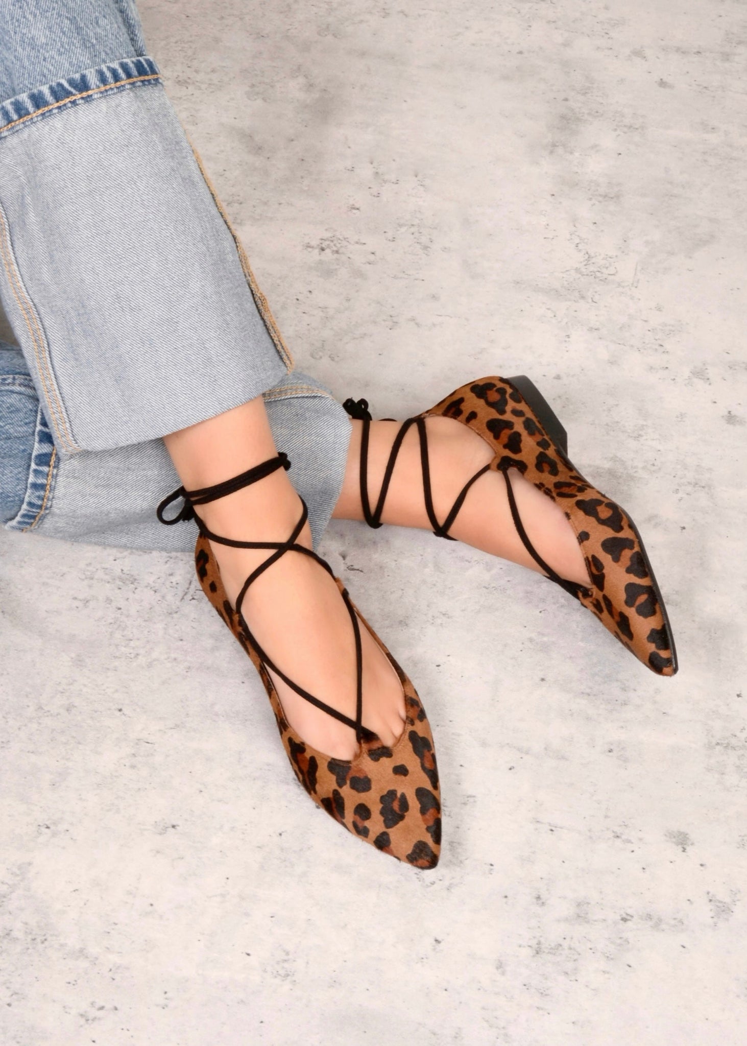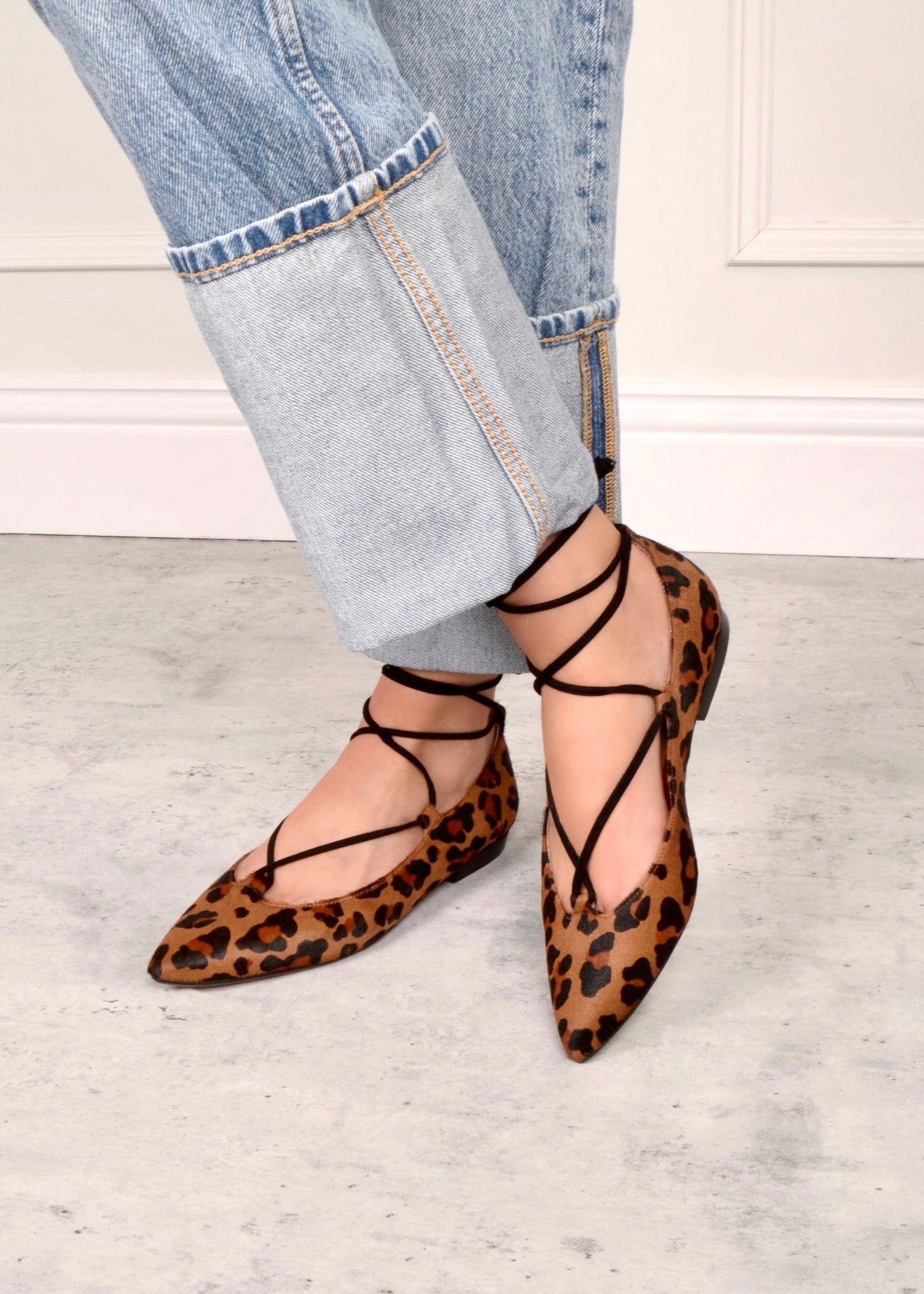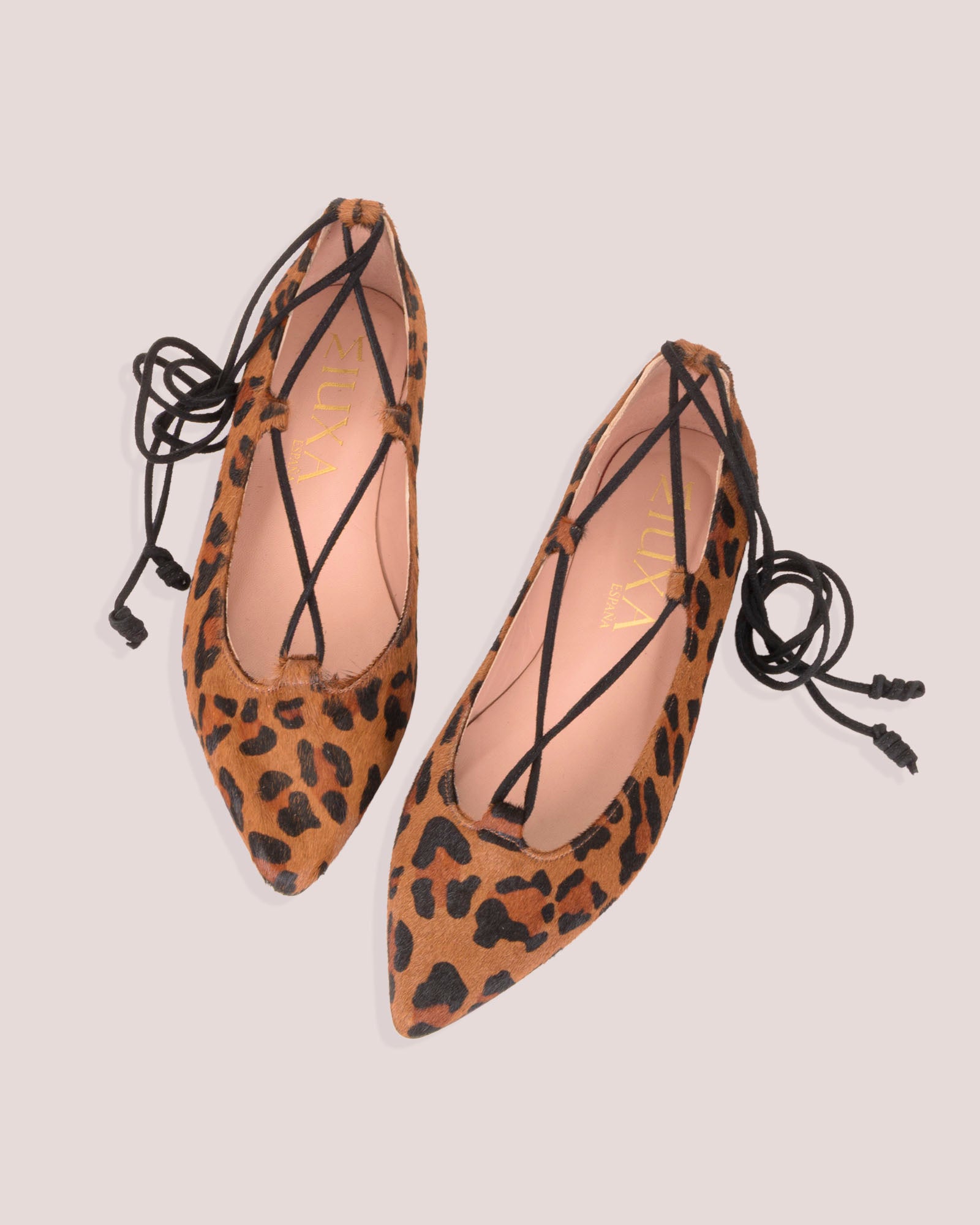 - Bailarina en pelo de potro natural con estampado de leopardo.