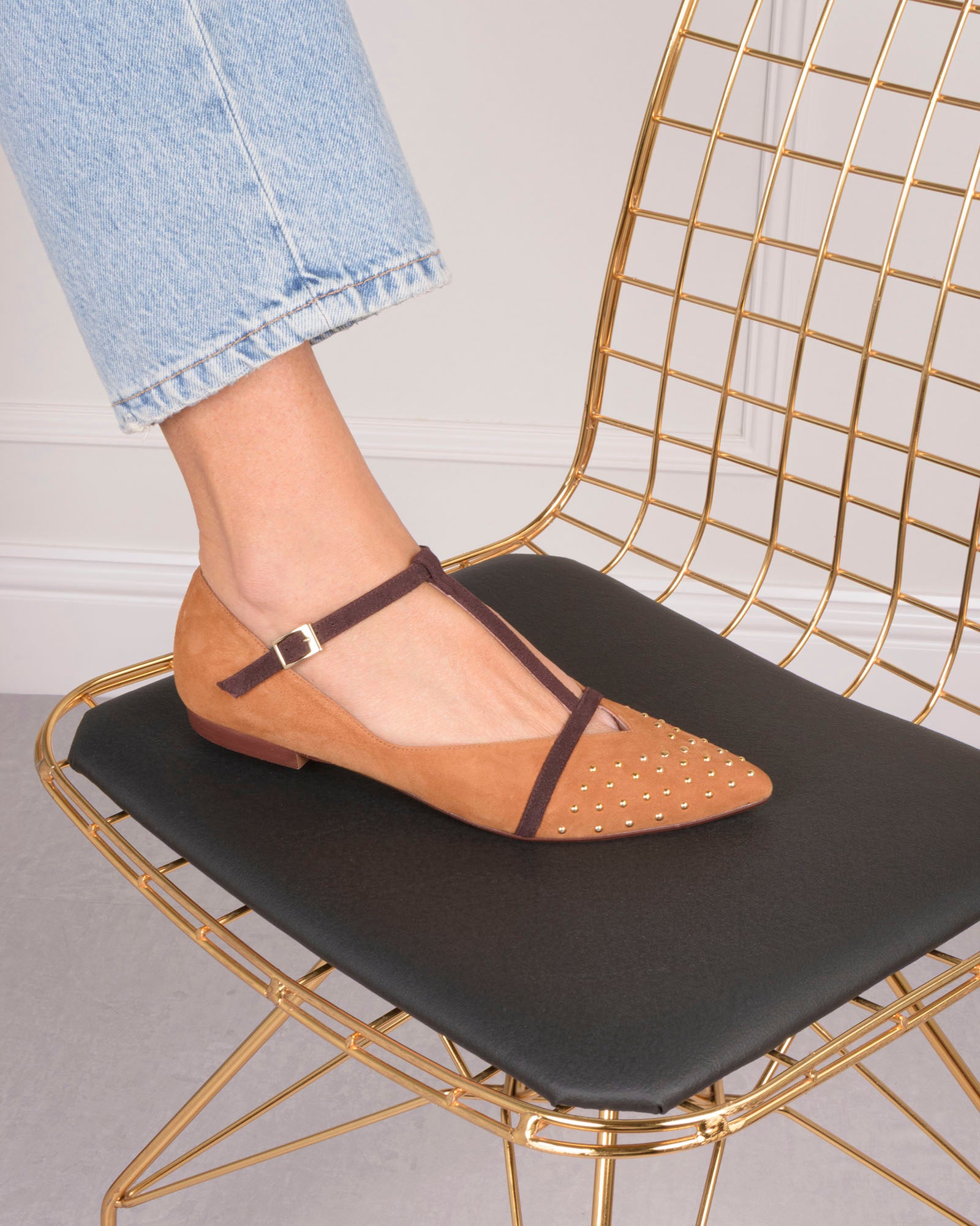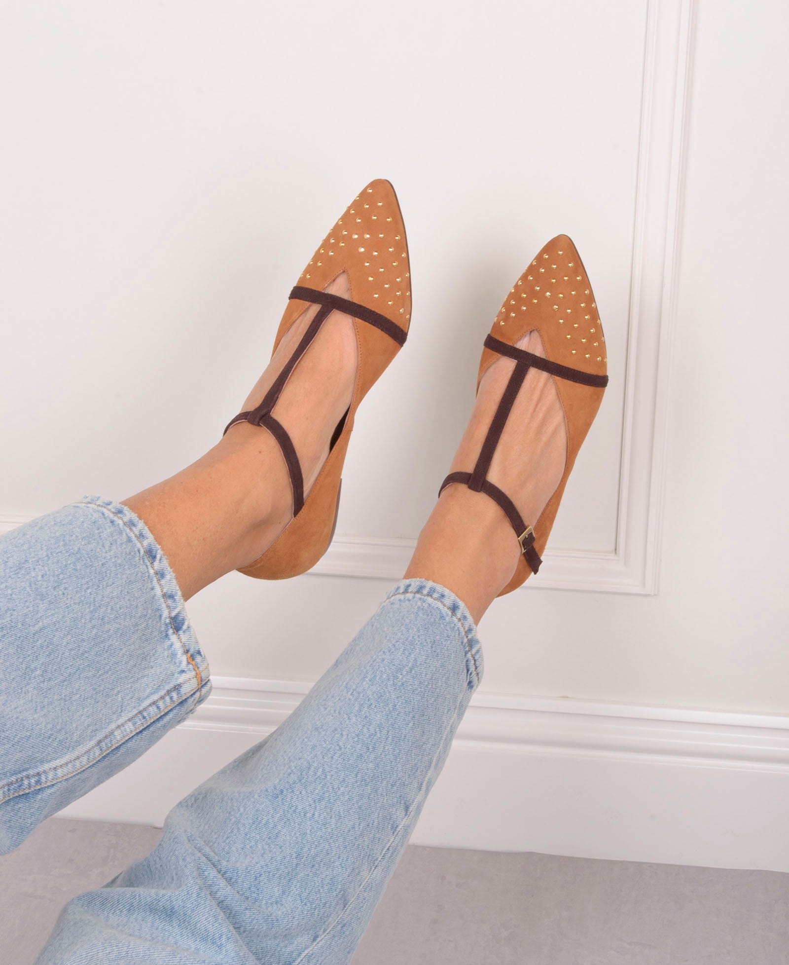 - Bailarina en ante suave color camel.