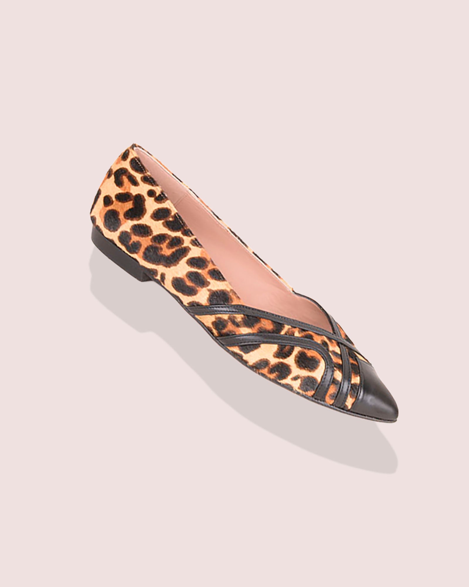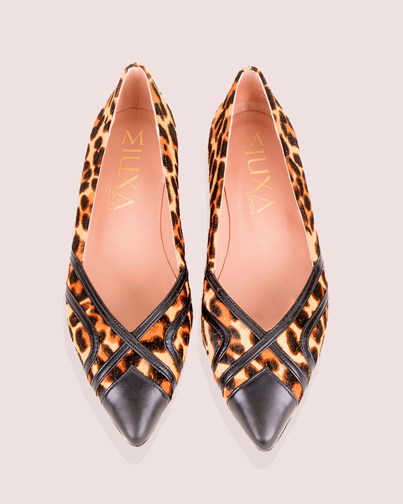 - Bailarina en pelo de potro natural con estampado de leopardo.