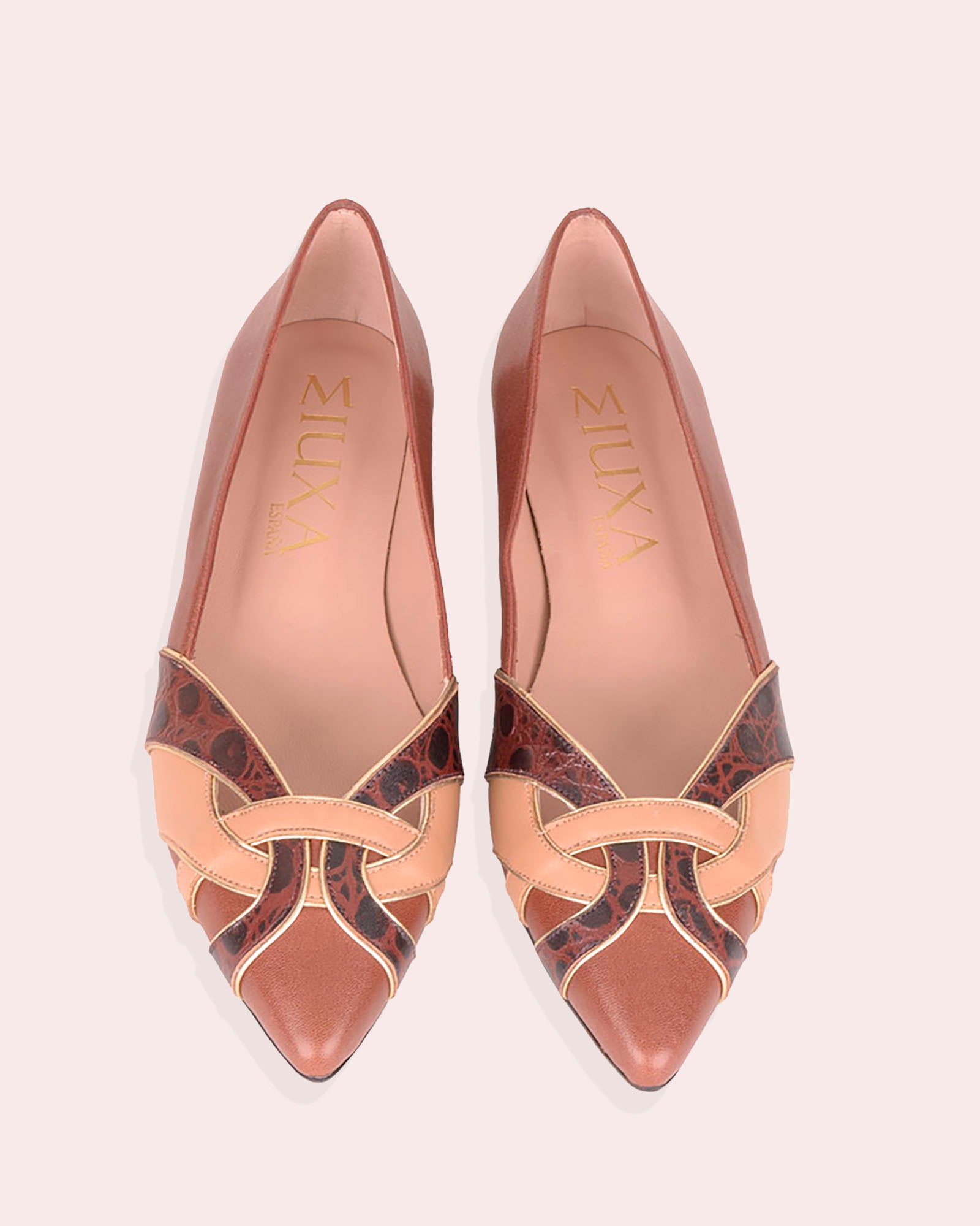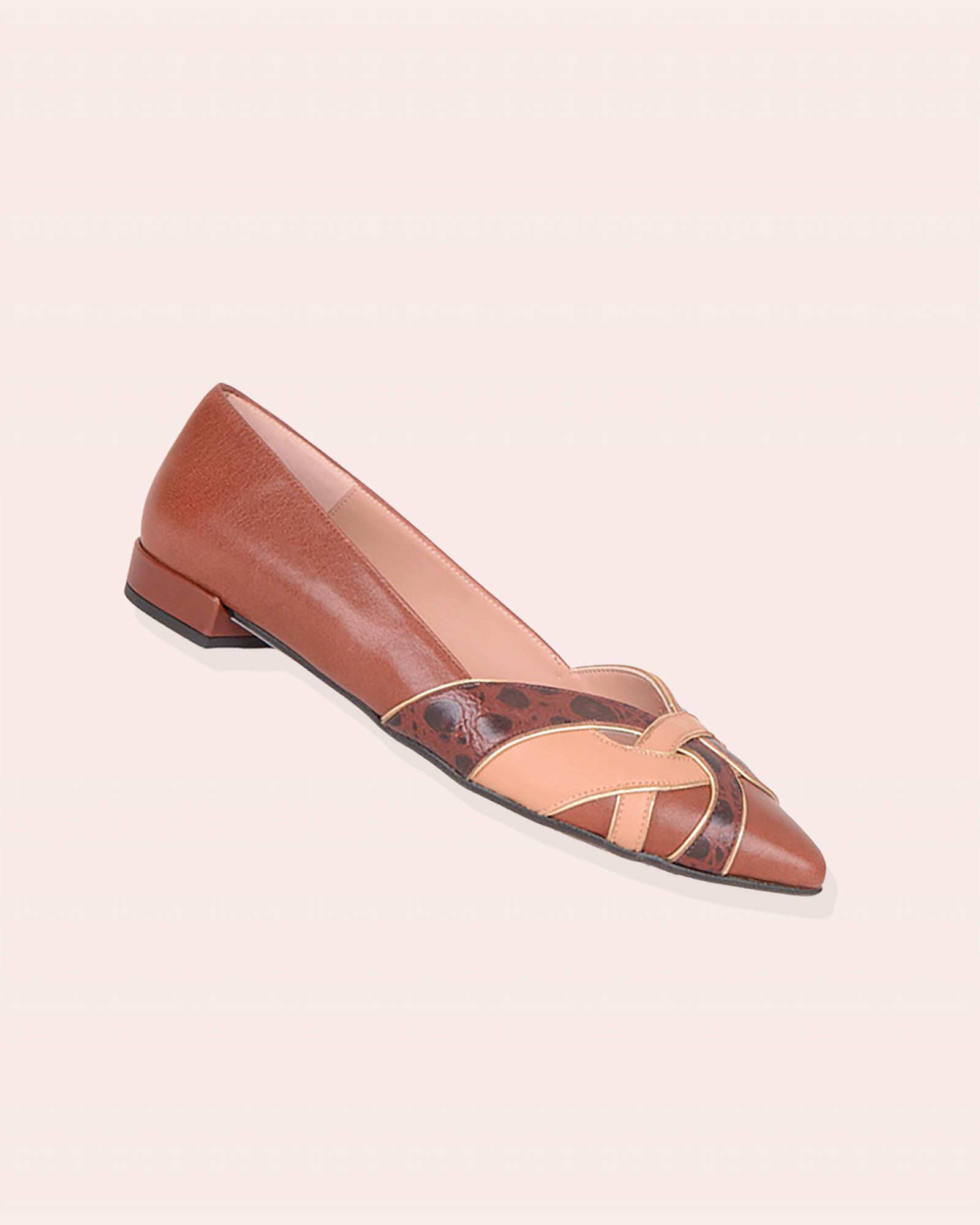 - Tacón de 2cm forrado en piel color marrón.