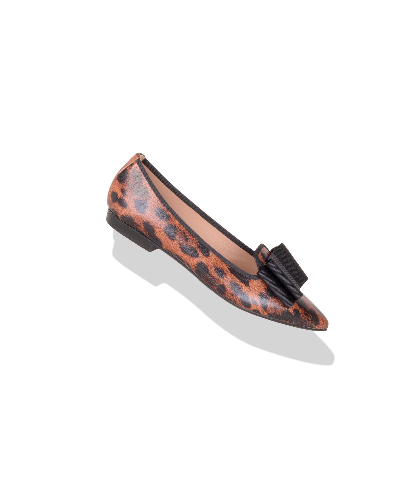 Slipper fabricada en ante laminado pantera en tonos camel y negro. Adorno de lazo negro. Forro interior piel. Plantilla de piel acolchada. Tacón de 1’5cm de altura. Suela antideslizante.