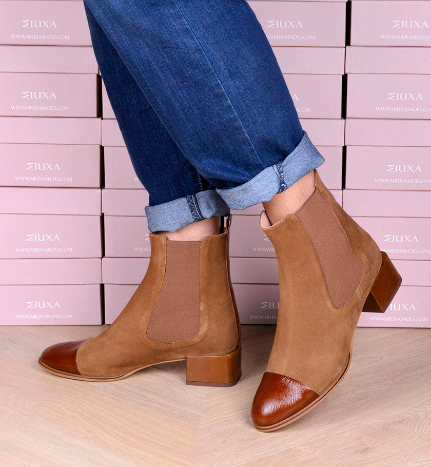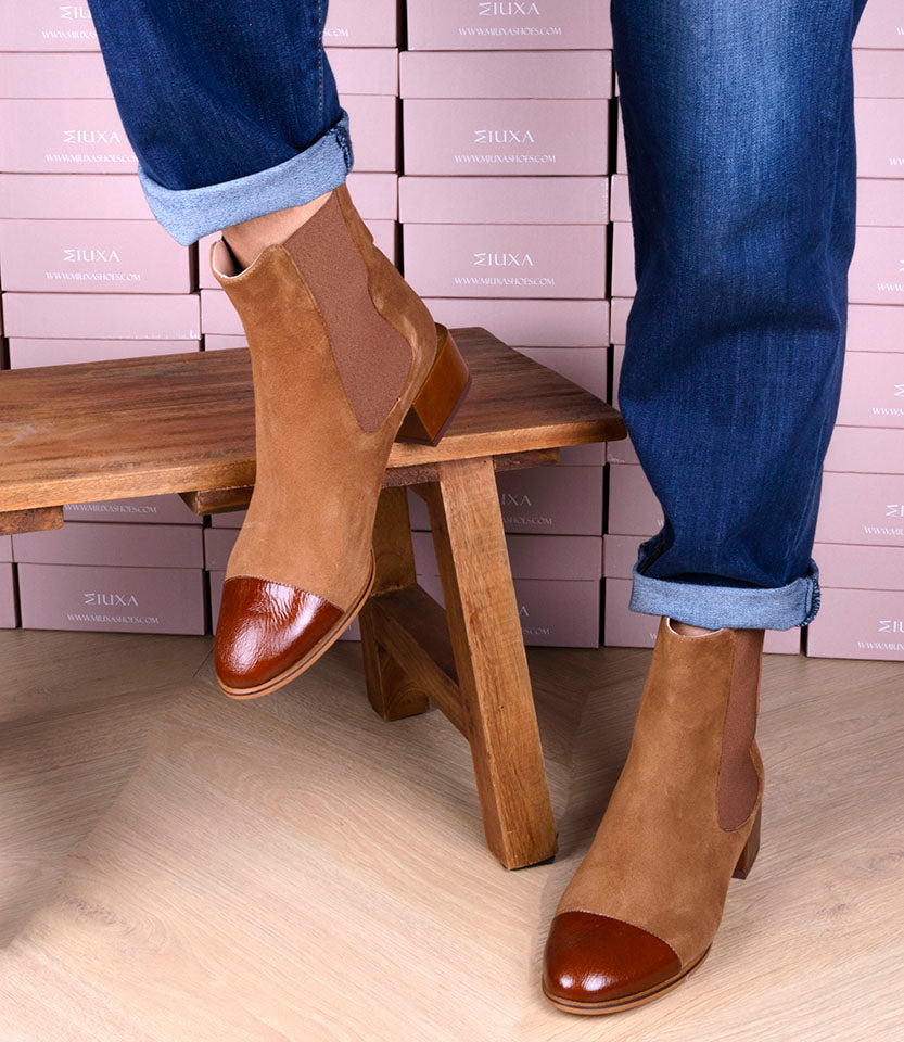 • Botín en ante suave color camel.