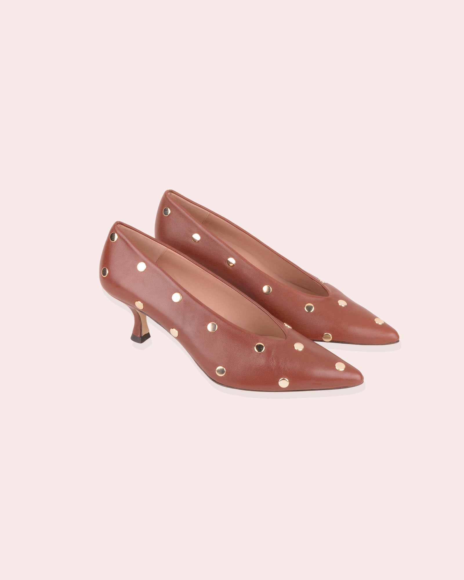 - Tacón de 4,5cm forrado en piel color marrón.