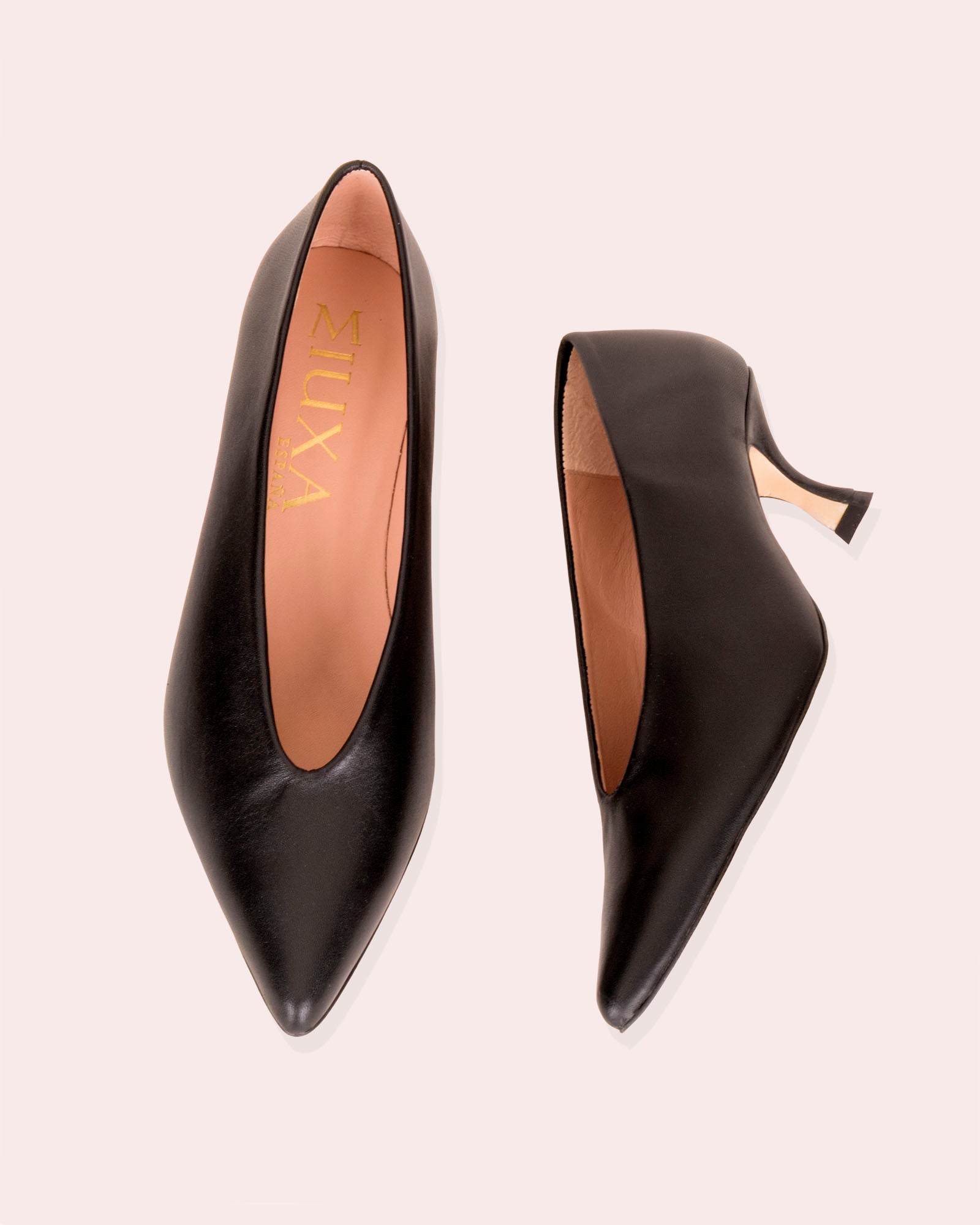 - Tacón de 4,5cm forrado en piel color negro.